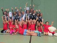 meisterten sie die Hindernisstaffel mit Bravour. Für die neue Bestzeit erhielten sie 7,24 Punkte. Mit diesem Vorsprung traten sie bei der zweiten Disziplin, dem Tanzen, an und konnten das Kampfgericht mit ihrer Darbietung überzeugen. Belohnt wurden sie dafür mit der Tageshöchstwertung in ihrer Altersklasse, sechs bis neun Jahre, mit 7,13 Punkten. Dasselbe gelang den Mädchen, die von Melanie Wölflick, Marlene Hillmeier und Lisa Schrömer trainiert werden auch beim Turnen, wo sie sich sogar gegenüber dem letzten Wettkampf in Oberhaching noch steigerten. Groß war der Jubel als die Wertung 7,15 Punkte von 8 möglichen lautete. Bei der letzten Disziplin, der Überraschungsaufgabe, ging es hoch her – hier wird vor allem Schnelligkeit und Geschicklichkeit von den Teilnehmern gefordert – als es darum ging, Fähnchen in einen Schaumstoffblock in vorgegebene Löcher zu stecken. Alle Mitreisenden, die Eltern, die Mädchen der KGW1 und die Betreuerinnen Patricia Schätz und Susanne Thöne feuerten die Mannschaft auf Stärkste an, um noch eine zehntel Sekunde herauszuholen. So unterstützt konnte natürlich die volle Punktzahl erreicht werden.