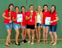 Mit den Eltern und Begleitern konnte man sich nun beim Essen ausruhen und gestärkt und erwartungsvoll um 19.30 der Siegerehrung folgen. Im Rahmen der Siegerehrung wurden die besten Darbietungen des Tages nochmals gezeigt, darunter auch die Kür der KGW 1 Gruppe. Als es dann für beide Mannschaften hieß: „…der 1. Platz geht an … den SSC Landau“, waren die Freude und der Jubel riesengroß. Zwei Mal in einer Saison einen Doppelsieg der SSC-Mannschaften mit nach Landau zu bringen ist wirklich eine Leistung und der Lohn für den Trainingseifer der Mädchen. Die KGW 2 Mannschaft hatte eine Gesamtpunktzahl von 29,52 Punkten, die KGW 1 Mannschaften eine Gesamtpunktzahl von 31,45 Punkten.